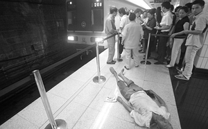地鐵工作人員發(fā)現(xiàn)后,按下緊急停車按鈕,使列車在離老人30米處緊急剎住。老人因驚嚇過度而癱倒在軌道上,被工作人員抬上站臺(tái),并被聞?dòng)嵹s來的警察送到警署。整個(gè)搶救過程持續(xù)約5分鐘。之后,地鐵恢復(fù)正常運(yùn)行。