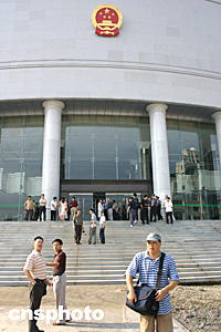 “一二·二三”特大井噴事故案今天上午九時三十分在重慶市第二中級人民法院開庭審理。圖為重慶市第二中級人民法院剛剛落成的大樓,今天的審判庭就設(shè)在這里。作者:鄒輝
