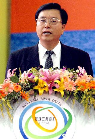 七月十四日,首屆泛珠三角區域經貿合作洽談會在廣州國際會議展覽中心隆重開幕,中國國家發展與改革委員會、商務部、國務院港澳辦、國務院發展研究中心以及“9+2”政府組織的經貿代表團參會。圖為中共中央政治局委員、廣東省委書記張德江宣布“珠洽會”開幕。作者:陳文