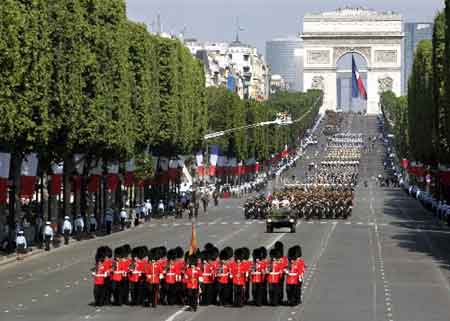提到法國國慶大閱兵,人們總能聯想到香榭麗舍大道,但此前舉行國慶閱兵式的地點法國曾有多處。在德斯坦總統執政期間的1974年和1979年,法國國慶閱兵是在巴士底獄與共和國廣場間的大道上舉行的;1975年則是在法國的樊尚地區舉行;1977年,法國國家軍校也舉行過國慶閱兵盛典。