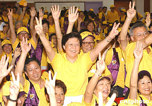 范徐麗泰出席成立大會﹐對選舉充滿信心﹐與助選團(tuán)成員共同歡慶。