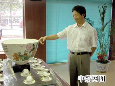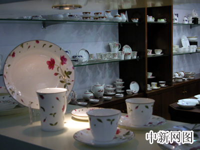 第二屆“網上河北行”記者一行22日來到唐山市海格雷陶瓷有限公司參觀,該公司生產的骨質瓷吸引了記者們的目光。(秦欣攝)