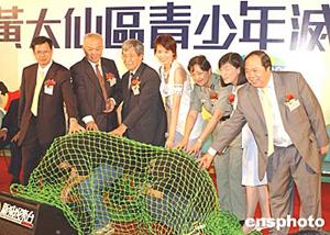 香港黃大仙區青少年滅罪嘉年華24日在鉆石山荷里活廣場舉行﹐歌星梁詠琪與來自社會各界人士出席并現場表演捉拿罪犯的場面。作者:趙振清
