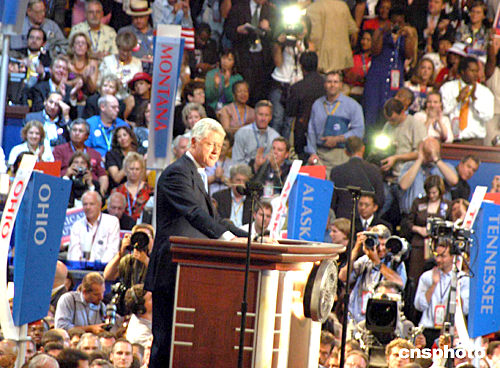 中新網(wǎng)7月26日電 據(jù)路透社報(bào)道,美國民主黨全國代表大會26日在波士頓開幕,以前總統(tǒng)克林頓為首的民主黨老將們以全明星陣容亮相開幕式,為該黨總統(tǒng)侯選人克里入主白宮站臺助選。除克林頓外,在開幕式上發(fā)表講話的還包括前總統(tǒng)卡特、前副總統(tǒng)戈?duì)柤凹~約州參議員希拉里。