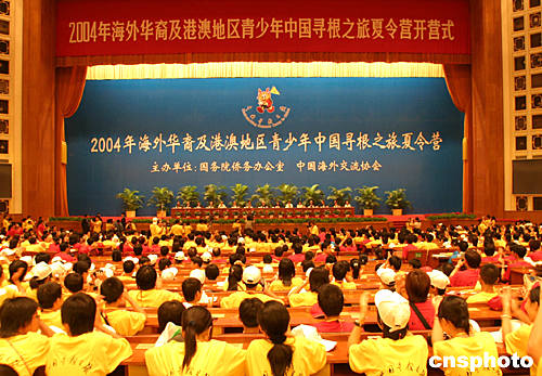 “2004年海外華裔及港澳地區青少年中國尋根之旅夏令營”開營儀式二十七日在北京人民大會堂舉行,此次由國務院僑辦和中國海外交流協會主辦的夏令營共有三十六個國家和港澳地區的近四千名青少年參加。中新社記者:史利