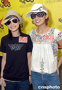 人氣組合Twins兩名成員鐘欣桐(阿嬌)、蔡卓妍(阿Sa)7月27日在香港出席商業電臺《叱咤樂壇》錄音訪問。作者:鄧慶樂