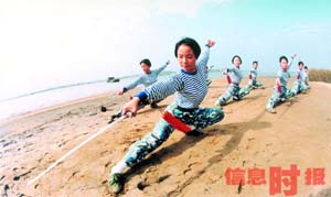 野外生存訓(xùn)練是提高陸戰(zhàn)隊(duì)員綜合作戰(zhàn)能力的重要途徑,世界上一些國(guó)家的王牌部隊(duì),無(wú)不是在魔鬼式訓(xùn)練下發(fā)展壯大,如美國(guó)的“海豹”、英國(guó)的“野狼”、德國(guó)的“鷹”、前蘇聯(lián)的“飛旅”等等。面對(duì)這些世界王牌勇士們,中國(guó)海軍女子陸戰(zhàn)隊(duì)豈能遜色!