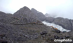 云南麗江的玉龍雪山景區,頂峰的冰川公園風景秀麗景色怡人,8月游客絡繹不絕。作者:洪少葵