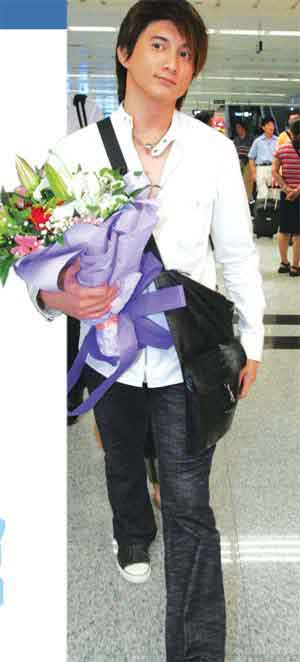 昨晚8時,記者趕到機場時,吳奇隆已經抵達機場,一襲白衣的他正站在機場門口等待助手取行李。除了一個飛機場的地勤人員認出了他,向他索要簽名外,幾乎沒有人注意到他,等待的吳奇隆顯得有些寂寞。后來,是記者拍照的閃光燈、幾位禮儀小姐的鮮花才讓機場的其他旅客注意到了他的到來!澳鞘菂瞧媛?”“就是那個小虎隊的吳奇!”這時,人們才紛紛圍了上來,在主辦方工作人員的帶領下,吳奇隆坐上一輛白色奔馳駛向酒店!