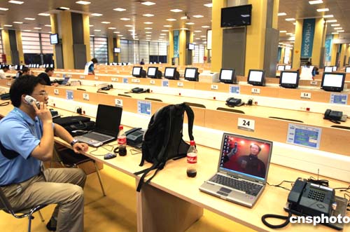(當(dāng)?shù)貢r間)二○○四年八月三日,據(jù)有關(guān)人士透露:位于希臘雅典奧運會主體育場外的記者新聞中心只提供收費撥號傳輸,沒有先進的寬頻數(shù)據(jù)傳輸服務(wù)。中新社記者:任晨鳴