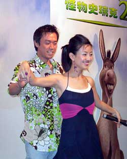 中新網8月6日電 據新京報報道,昨天下午,好萊塢動畫片《怪物史瑞克Ⅱ》在北京舉辦首映活動。按計劃,為該片配音的趙薇和王學兵出席,但只有王學兵一人到場。