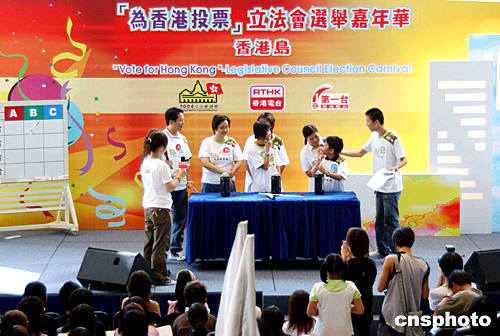 8月7日,香港電臺在藍灣廣場舉辦“為香港投票-立法會選舉嘉年華”,希望透過與民眾同樂,加深市民對選舉的認識。圖為市民踴躍參加節目,一派氣氛熱鬧。作者:洪少葵