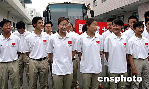 8月8日,中國奧運軍團從北京出征2004雅典奧運會,中國跳水隊在北京集合準備出發奔赴雅典奧運會賽場。中新社記者:盛佳鵬