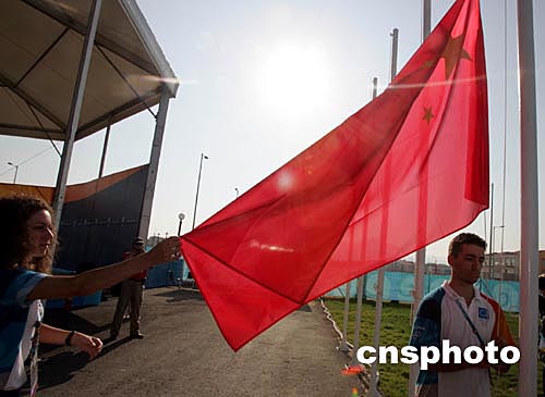 中新社雅典八月九日電 雅典今天天氣晴朗,北京時間下午兩點,中國奧運代表團升旗儀式在奧運村內準時舉行,前任國際奧委會主席薩馬蘭奇和中國代表團的一百多名團員參加了儀式。