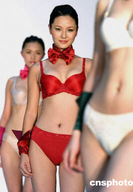 近日在北京舉行的旨在展示中國(guó)當(dāng)?shù)貎?nèi)衣發(fā)展趨勢(shì)的時(shí)裝秀上,T型臺(tái)上盡現(xiàn)東方嫵媚新視點(diǎn)。