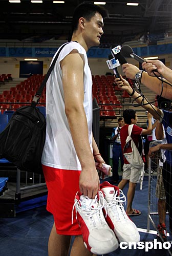 當地時間八月十二日下午,剛剛抵達雅典的中國男籃在郊外奧運會籃球館參加訓練。