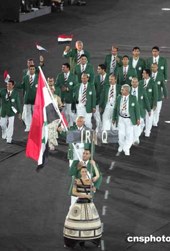當地時間八月十三日晚,第二十八屆奧運會在希臘雅典開幕。圖為伊拉克代表團進入會場。中新社記者:毛建軍