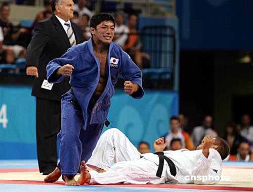 日本選手內(nèi)柴正人于當(dāng)?shù)貢r(shí)間八月十五日在雅典獲得第二十八屆奧運(yùn)會男子六十六公斤級柔道比賽冠軍。中新社記者:毛建軍
