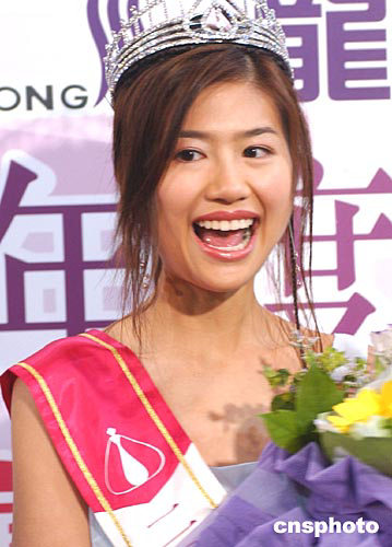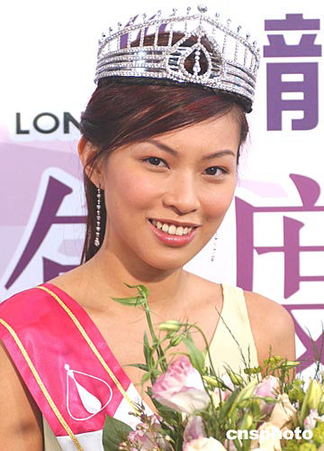 2004年度香港小姐冠軍徐子珊﹑亞軍朱慧敏﹑季軍符思思16日在會(huì)展中心出席香港龍發(fā)制藥集團(tuán)頒獎(jiǎng)儀式。中新社記者:趙振清