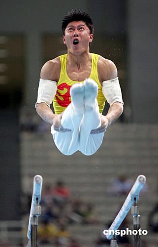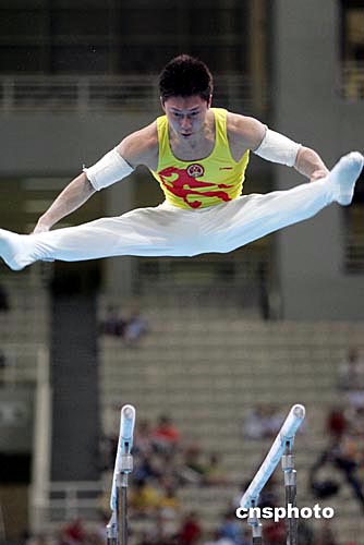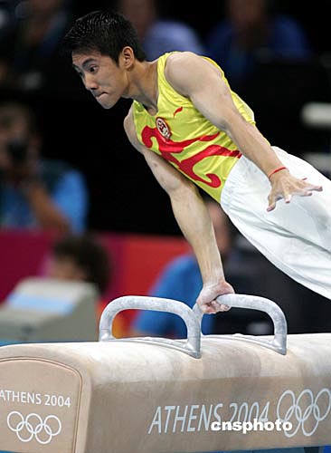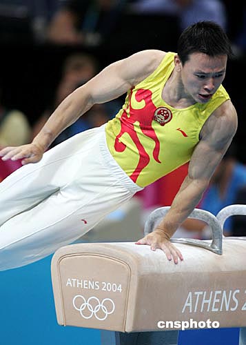 當地時間八月十六日晚,雅典奧運男子體操團體比賽在奧運體操比賽館舉行,中國隊衛冕失利,僅獲得第五名。中新社記者:毛建軍