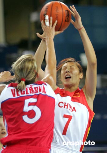 下半場比賽中國隊命中率明顯下降,捷克隊哈姆佐娃內(nèi)突外投,接連得分,將分差擴大為雙位數(shù)。中國隊此時有些急躁,葉莉在進攻中帶球撞人領到自己的第四次個人犯規(guī),球隊更是雪上加霜。不久后陳楠也吃到了第四個犯規(guī),中國隊內(nèi)線開始崩塌。捷克隊七十五比六十三領先結束前三節(jié)。
