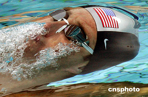 圖為美國選手Aaron Peirson在男子200米仰泳比賽中被捕捉到的一個鏡頭。