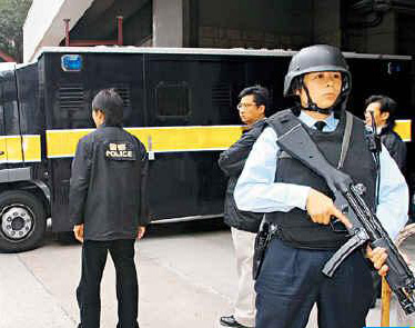 不過,保衛仍然森嚴,“O記”在審理此案的香港高院14樓設置指揮中心,由A組警司蘇錦成帶隊,警員都荷槍實彈,配備MP5長槍及散彈槍戒備。此外,出入法庭的人都要經過金屬探測器檢查,記者亦不能走近停泊囚車地點拍照。最后懲教署囚車由兩輛警車前后護送下離開高院。