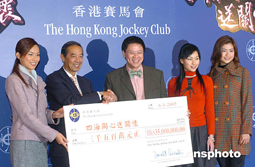 香港賽馬界包括市民﹑馬迷和員工透過馬會的多個渠道慷慨解囊﹐為南亞地震海嘯賑災捐款3500萬港元。中新社記者:趙振清