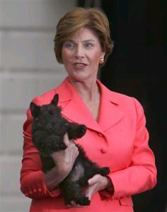 中新網(wǎng)1月7日電 據(jù)路透社報(bào)道,美國(guó)總統(tǒng)布什和夫人勞拉日前又碰到了一樁喜事——他們得到了一只名為“比斯利女士”的蘇格蘭幼犬,并帶它在6日首次在媒體面前亮相。