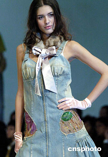 1月19日,香港會展中心舉行的“香港時裝節秋冬系列2005”上,模特在T型舞臺演繹“獨家時裝表演”專場的設計師最新服飾系列。作者:洪少葵