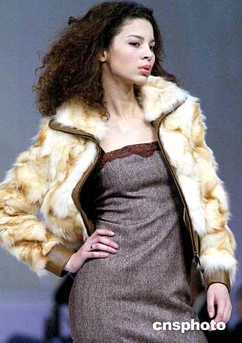 1月19日,香港會展中心舉行的“香港時裝節秋冬系列2005”上,模特展示“獨家時裝表演”專場皮草秋冬系列。作者: 洪少葵