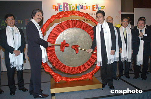 香港影視娛樂大使梁朝偉與工商及科技局局長曾俊華攜手敲響銅鑼,象征為活動揭開序幕。