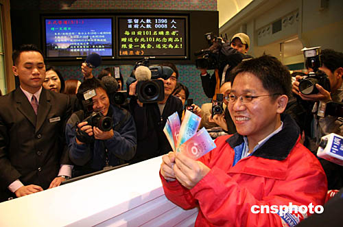 正式售票的半小時前,臺北一O一大樓觀景臺在五樓舉辦了“祥獅獻瑞”慶祝活動,兩頭生動活潑的紅色醒獅為排隊等候買票的觀眾和媒體作了精彩表演,觀景臺經理季正杰隨后為售票開鑼。(完)