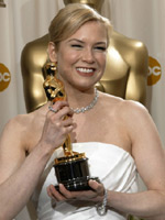 中新網1月21日電 在電影《冷山》中因扮演鄉村女孩而獲得2004年奧斯卡最佳女配角的蕾妮-齊維格有著一張獨特的北歐混血美女的面孔,她飄忽于塵世之外的獨特氣質使她在美女如云好萊塢顯得格外的清新可人。同前兩天受到奧斯卡組委會欽點的查理茲-塞隆一樣,她也是剛剛參加完金球獎的頒獎典禮,就被邀請頒發將于2月27日開出的第77屆奧斯卡獎。