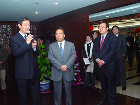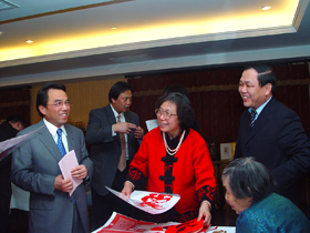 招待會上,來自京城百工坊的4位民間藝術家為來賓們現場制作了剪紙、泥人、面人和燙畫葫蘆,他們的精湛技藝和精彩表演體現了濃濃的中華特色和民族氣韻,引來客人陣陣喝彩。招待會自始至終洋溢著歡快友好的氣氛。