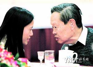 從楊振寧上臺講話到他回到自己的座位上,翁帆的目光始終追隨著他。兩人在聯誼會期間幾乎很少交談,每次都是楊振寧首先和妻子說話,翁帆則把頭靠過去仔細傾聽,還不時地流露出幸福的微笑。(李仲虞)