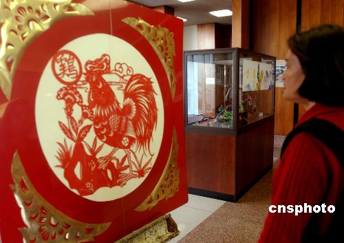 中國傳統農歷雞年藝術品一月開始在美國洛杉磯阿罕布拉市政廳展出,這里已成為華人新移民聚居的城市。作者:賈國榮