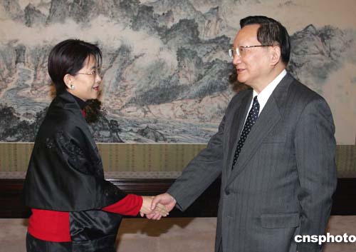 圖:唐家璇會見臺灣海峽兩岸聯合經貿協會參訪團