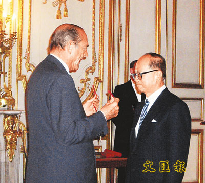 中新網1月25日電 據香港文匯報報道,法國政府早前向香港富商、長和系主席李嘉誠頒授榮譽軍團司令勛章(Commandeur de la Legion d,honneur)。授勛儀式在上周四晚在巴黎總統府愛麗舍宮舉行,由法國總統希拉克親自主持。