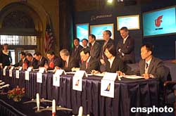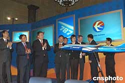 中國民航史上最大的一筆訂單二十八日在華盛頓簽訂,中國國航、東航、南航、海南航空、廈門航空、上海航空六家航空公司將進口價值七十二億美元的六十架最新型波音787飛機。這批飛機將從二00八年開始陸續交付使用。