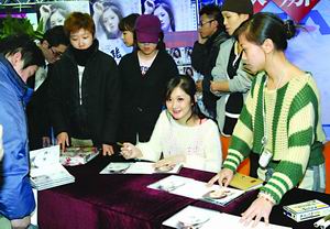 不少歌迷為了能搶占到與娜拉親密接觸的最佳位置,一大早便趕到音像店內(nèi)等候。當(dāng)娜拉帶著招牌式的可愛笑容現(xiàn)身時,現(xiàn)場數(shù)百名歌迷立刻炸開了鍋。簽售過程中臺下眾人你推我攘好不熱鬧,拿到簽名的歌迷興奮地聚在一起展示自己的“戰(zhàn)果”,即便是不買專輯的顧客也駐足在人群外觀看。現(xiàn)場近乎失控的局面讓稀有文化工作人員一邊忙著維持臺上的秩序,一邊忙著呼吁臺下歌迷不要擁擠耐心等待。無奈娜拉的無敵萬人迷魅力,讓不少原本負(fù)責(zé)維持秩序的音像廣場工作人員和保安都被徹底征服,不時地伸長脖子去看臺上的娜拉。而記者通道的管理人員只顧把關(guān)記者的進(jìn)入,絲毫不理會周遭擁擠的歌迷。(朱雅清)