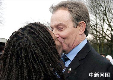 中新網(wǎng)2月1日電 據(jù)法新社報(bào)道,英國(guó)首相布萊爾1月31日在曼徹斯特郊區(qū)遭到一名家庭主婦的強(qiáng)吻。這位三個(gè)孩子的母親隨后稱,首相有一個(gè)“嬰兒唇,一個(gè)很溫柔的嘴唇”。