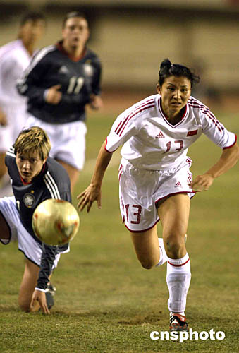 下半場比賽進行道第二十分鐘時,德國隊后衛克斯汀·斯特曼禁區內手球犯規,中國隊獲得點球機會。可惜三號李潔在主罰點球時太過緊張,罰球路線被德國隊門將識破,再度與進球無緣。最終,德國隊以二比零擊敗中國隊。