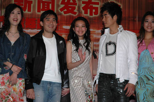 中新網(wǎng)2月2日電 據(jù)大公報報道,梁朝偉、任賢齊、舒淇及兩位韓籍女演員趙漢娜、曹秀鉉,昨日在北京出席電影《韓城攻略》的記者會,雖然當(dāng)?shù)貧鉁貫榱阆氯龋驿咳悦爸鴩?yán)寒穿上吊帶裙加披肩,與兩位打扮性感的韓籍女演員爭艷斗麗。