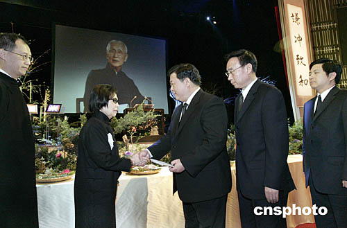 海協會會長汪道涵的個人代表孫亞夫、李亞飛在追思會上獻花。
