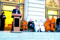 據悉,集會有一百多人參加,紐森市長、國會議員普洛西、蘭托斯及州議員里諾等都派代表出席。