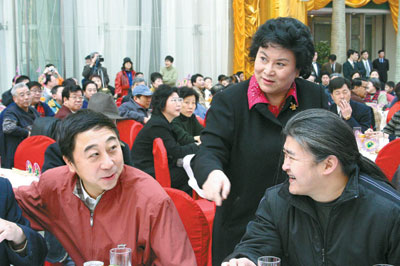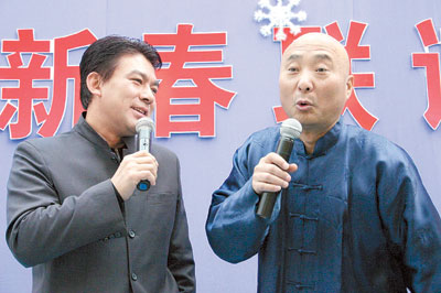 昨天,華彬大廈一層的大廳里,人聲鼎沸,笑聲不斷。在這里人們不僅見到劉蘭芳、馮鞏、李金斗、李文華、常寶華、孟繁貴等曲藝界的大腕們,同時也見到了陳佩斯、朱時茂、劉曉慶、劉歡、梁天等這些看上去原本沒有關(guān)系的演藝界明星們。聯(lián)誼會的當家主持是中國曲藝家協(xié)會分黨組書記、相聲名家姜昆以及相聲演員孟繁貴。連主持人都是相聲演員,您說這樣的會議能不熱鬧?上面抖著“包袱”主持會議,底下你一言我一語地接話茬兒,聯(lián)誼會始終洋溢著笑聲和掌聲。