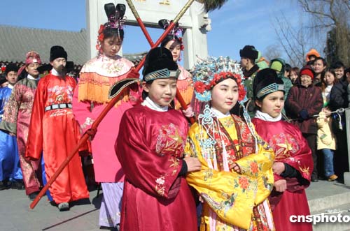二月九日農歷大年初一,北京大觀園依據中國古典文學名著《紅樓夢》的描繪,推出紅樓廟會的精品節目“元妃省親”儀式以其濃郁的民族特色,為雞年紅樓廟會錦上添花。作者:張勤