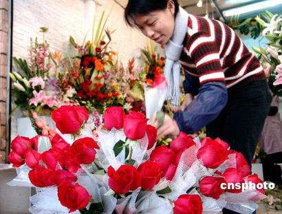 今年的情人節正值農歷大年初六,泉州各花店都精心準備了玫瑰花。作者:石勇