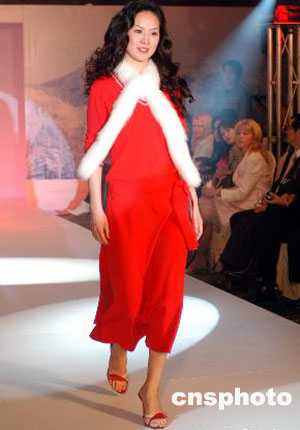 影視紅星任葆琳2月14日在香港為德國兩大著名時裝品牌Hauber & Luisa Cerano 05秋冬時裝匯演客串模特,任葆琳為時裝品牌Hauber展示05秋冬時裝。作者:鄧慶樂